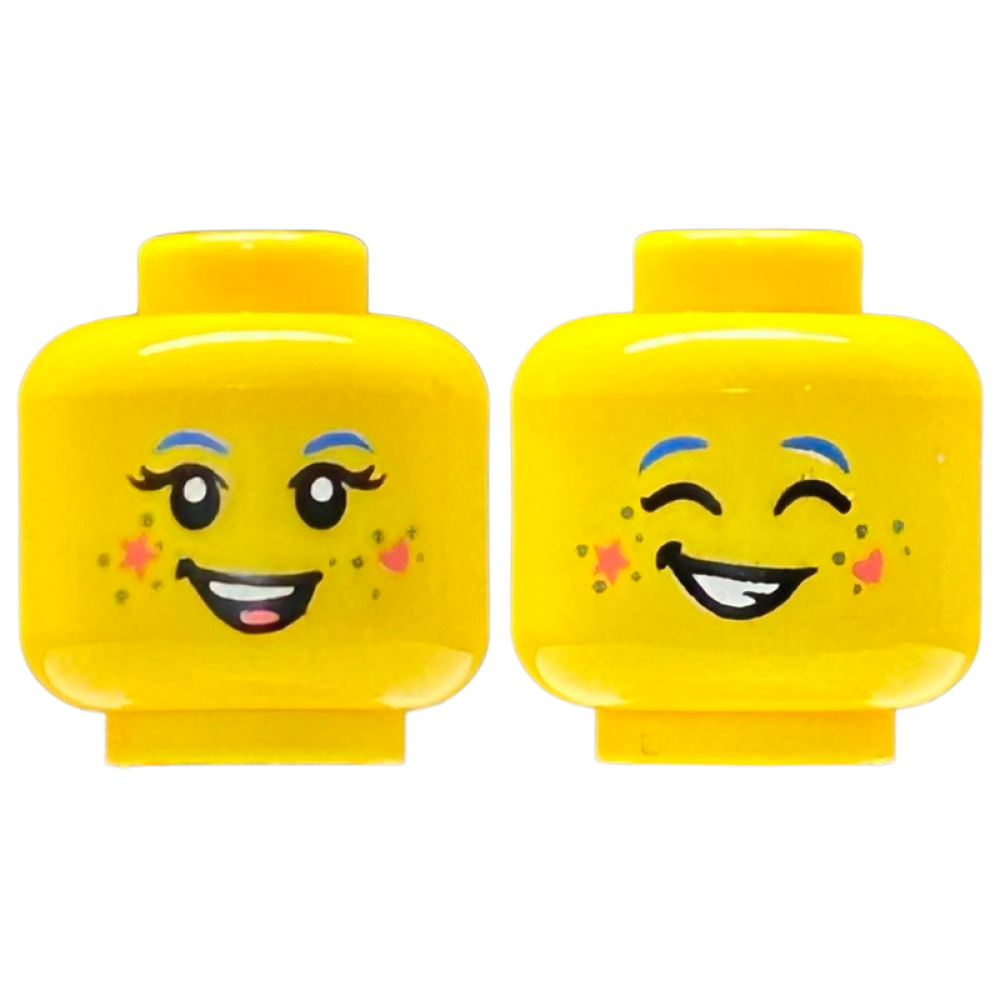 Hoofd, Dubbel, Vrouwelijk, Blauwe Wenkbrauwen, Ster en Hart op Wangen Yellow