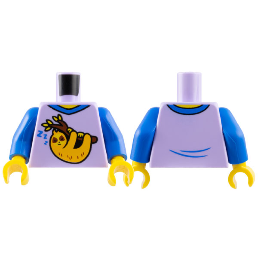 Romp, Shirt met Blauwe Mauwen en Luiaard print op voorkant Lavender