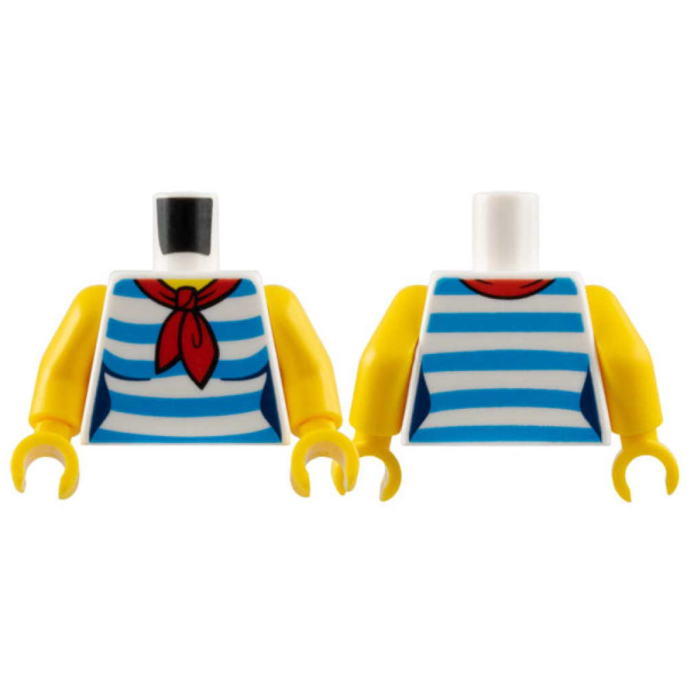 Romp, Vrouwelijk, Shirt met Dark Azure strepen en Rode Sjaal White