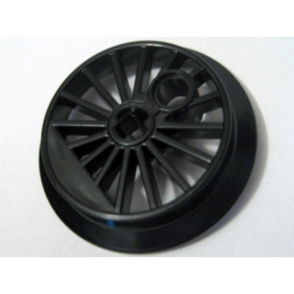 Treinwiel RC Trein, gespaakt met Technic As Gat en Contragewicht, 37mm D. (Flensdrijver) Black
